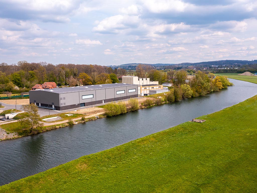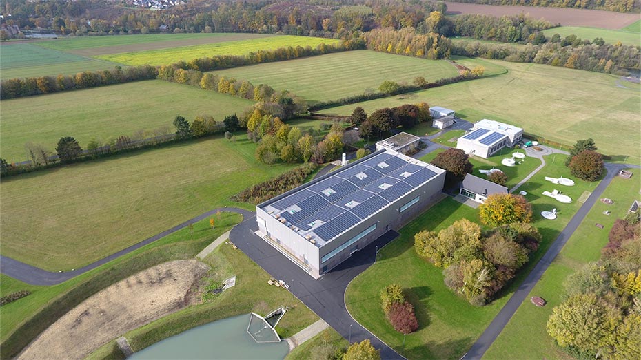 Seit vielen Jahren existieren in den Wasserwerken bereits kleinere PV-Anlagen auf den Dachflächen der Betriebsgebäude. Mit dem Bau der „Weitergehenden Aufbereitungsanlagen“ (WAA) in allen WWW-Wasserwerken kamen neue Flächen hinzu. Die Dächer der WAA sind über 80 Meter lang und 35 Meter breit und boten sich hervorragend zur Errichtung von PV-Dachflächenanlagen an. Bis zu 1,4 Mio. kWh/a grüner Strom können über die fünf neuen PV-Dachflächenanlagen auf den WAA-Gebäuden erzeugt werden.