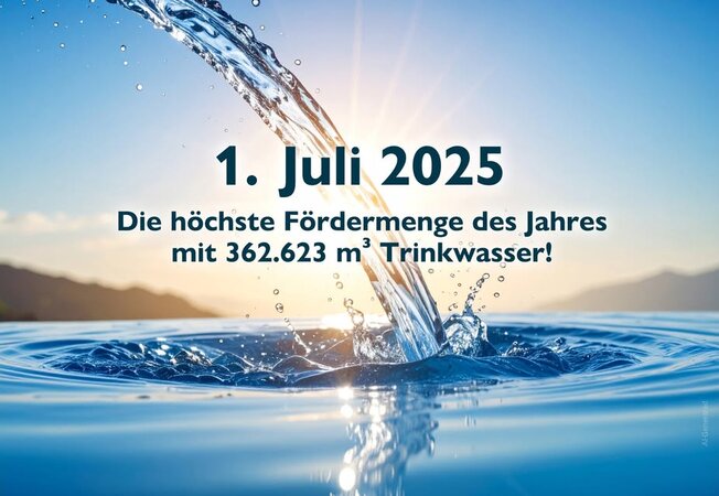 03. Jul 2025 um 12.23 UhrAnfang der Woche haben wir nicht nur die höchste Trinkwassermenge in 2025, sondern seit Sommer 2021 gefördert. Wie ihr seht, könnt ihr euch auch und gerade an den heißen Tagen voll auf uns verlassen! 😅