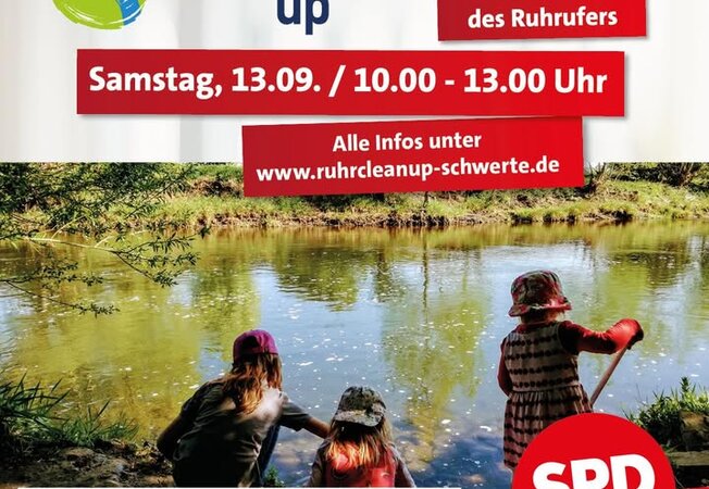 01. Sep 2020 um 15.01 UhrDie Ruhr ist Rohwasserlieferant für unser Trinkwasser. Zu seinem Schutz gibt es Wasserschutzzonen rund um die Wasserwerke bis hin zu den Ruhrflächen. Diese liegen meist in den Wasserschutzzonen 2 und 3 und sind für die Öffentlichkeit zugänglich. Viele hat es in diesem Corona-Sommer an die Ruhr gezogen, zum Relaxen, Baden und Picknicken. Doch leider haben längst nicht alle ihren Müll mitgenommen, so dass sich dieser wichtige Naturraum um die Ruhrauen aktuell in einem traurigen Zustand befindet. Nun naht Hilfe: am Samstag, den 12. September von 10 Uhr bis 13 Uhr findet der 1. RuhrCleanUp statt - von der Quelle bis zur Mündung der Ruhr. Für das Schwerter Stadtgebiet wird die Durchführung von der SPD Schwerte organisiert mit Unterstützung von DLRG, Kanuverein, dem städtischen Betriebshof und der Wasserwerke Westfalen GmbH. Für die hoffentlich Vielzahl an Freiwilligen, die sich an dieser tollen Umweltaktion zugunsten der blauen Lebensader im Stadtgebiet Schwerte beteiligen möchten, gibt es fünf Treffpunkte. Für die Geisecker an der Ecke Am Brauck/Ruhrtalradweg, um das dortige Ufer bis zum Wellenbad zu reinigen. Der Treffpunkt für Villigst ist an der Ruhrbrücke, von da aus soll auch das Gebiet unterhalb der Evangelischen Akademie Villigst gesäubert werden. Beim Vereinshaus der DLRG Schwerte am Detlef-Lewe-Weg treffen sich alle, die in der Stadtmitte für ein sauberes Ruhrufer sorgen wollen. An der gelben Brücke werden sich die Wandhofener und die Ergster treffen, um gemeinsam auf beiden Ruhruferseiten tätig zu werden. Und in Westhofen ist der Treffpunkt da, wo die Wasserstraße auf die Ruhr stößt. Wasserwerke Westfalen hofft auf rege Teilnahme und eine erfolgreiche und gemeinschaftsstiftende Aktion, die hoffentlich einen positiven Einfluss auf das Verhalten der Besucher im nächsten Jahr haben wird. Alle Teilnehmer*innen werden gebeten, sich vorab unter Angabe eines der fünf Treffpunkte anzumelden unter: natascha.baumeister@spd-schwerte.de oder 01578/5308164 oder auf Facebook über https://www.facebook.com/events/388575855393389/.